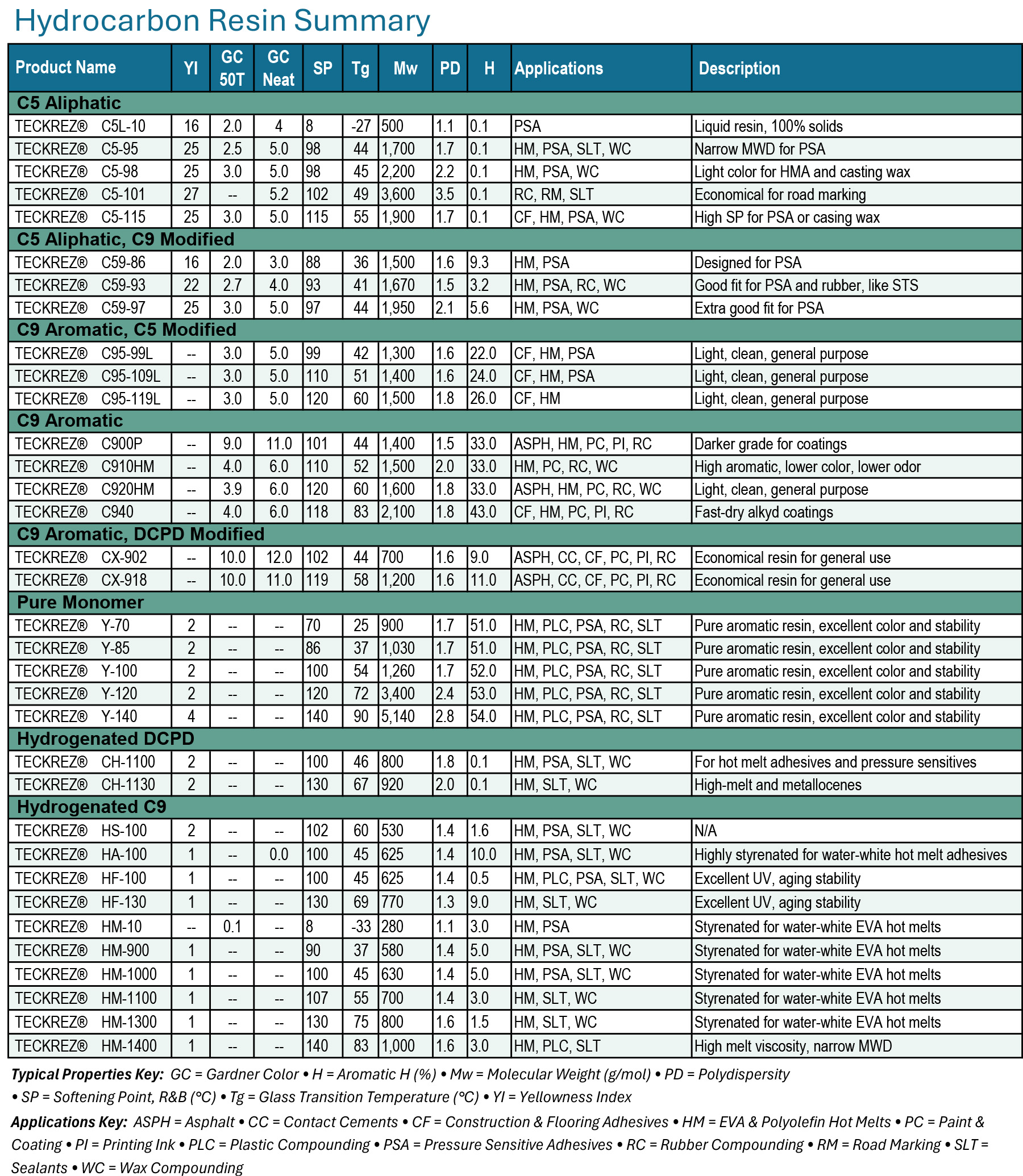 Comments/Applications: Pure aromatic resin, excellent color and stability